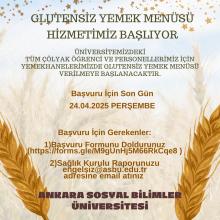 Üniversitemizin yemekhanelerinde “Glutensiz Paket Yemek Menüsü” hizmeti verilmeye başlanacaktır.